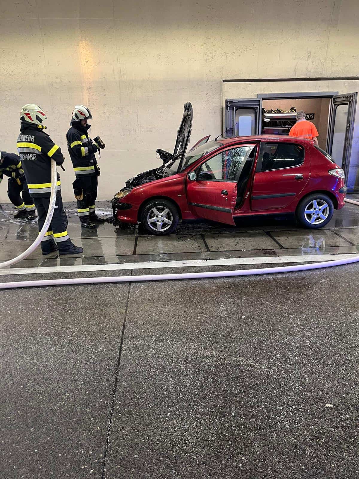 Am 26.06.2025 um 08:35 Uhr alarmierte die Landesleitzentrale Steiermark die Feuerwehren der Tunnelbasiseinheiten Süd (BFV GU) und Nord (BFV LE) des Gleinalmtunnels auf der A9, Pyhrnautobahn zu einem PKW Brand in der Tunnelanlage, woraufhin die Feuerwehren der Basiseinheit „Süd“ Übelbach/Markt, Friesach/Wörth, Gratkorn/Markt und Deutschfeistritz zusammen mit dem ELF Graz/Umgebung und dem AFÜST des Abschnittes 1 zum Gleinalmtunnel beordert wurden. Das Fahrzeug kam in Fahrtrichtung Voralpenkreuz in einer Pannenbucht zu stehen und stand im Bereich des Motorraumes in Vollbrand. Ein nachfolgender LKW-Lenker reagierte rasch und konnte mit einer im Tunnel installierten Löschanlage die Brandbekämpfung vornehmen. Dabei wurde er kurze Zeit danach von Mitarbeitern der ASFiNAG, welche in der Nähe Wartungsarbeiten durchführten, unterstützt. Die einsatzleitende Feuerwehr Übelbach/Markt führte anschließend die endgültige Brandbekämpfung durch, die restlichen Kräfte bezogen den Bereitstellungsraum am Südportal. Durch das rasche Eingreifen der Ersthelfer konnte wohl größere Ausbreitung, aber auch Personenschaden verhindert werden. Unsere – mit KRFS-Tunnel, VFA und MTF (Abschnittsführungsstab) ausgerückten 12 Mitglieder – konnten nach einer Einsatzzeit von ca. 1 Stunde den Einsatz beenden und in das Feuerwehrhaus einrücken.