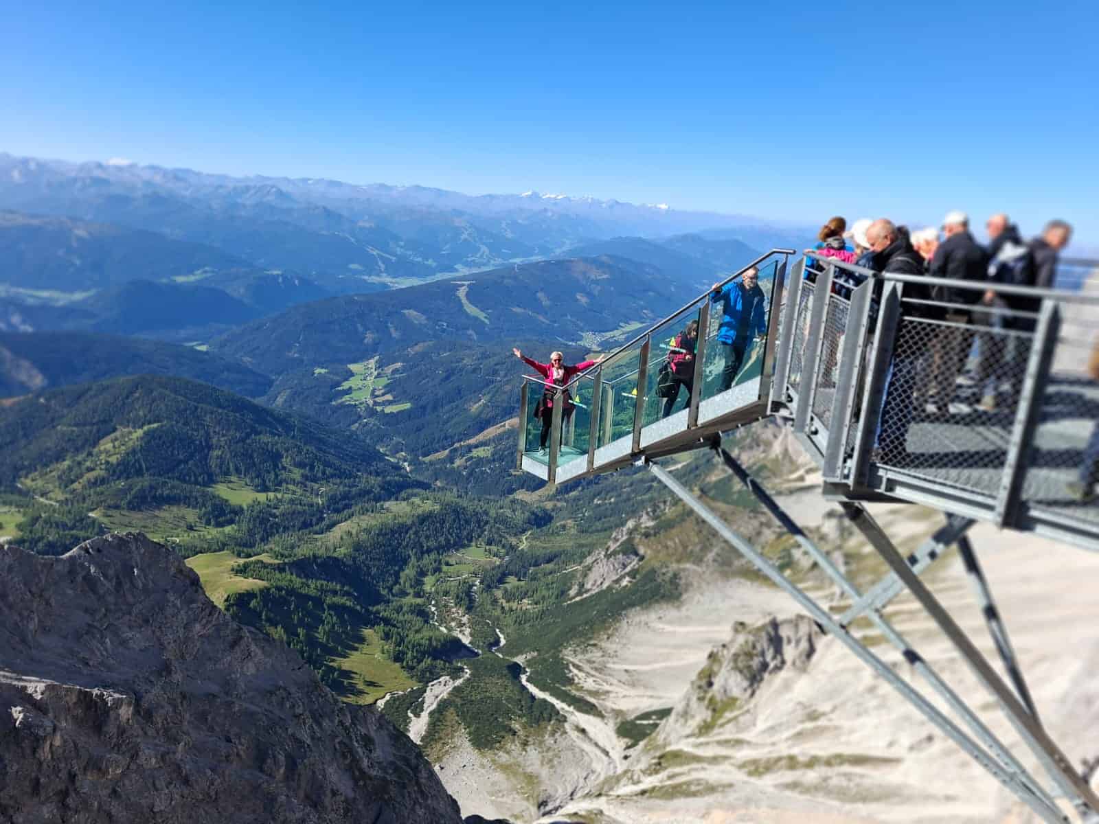 Der Dachsteingletscher, mit einer Höhe von 2.700 Metern, thront als majestätischer Gipfel über der Steiermark und zählt zu den faszinierendsten Ausflugszielen in Schladming. Die beeindruckende Präsenz des massiven Berges allein ist atemberaubend, während das herrliche Panorama über das Ennstal bis hin zu Slowenien und Tschechien den Betrachter sprachlos macht. Eine kurze 7-minütige Fahrt mit der Dachstein Panoramagondel genügt, um in eine völlig neue Welt einzutauchen. Ein atemberaubendes Panorama erstreckt sich so weit das Auge reicht, begleitet von Highlights wie der Dachstein Hängebrücke mit der Treppe ins Nichts, dem Sky Walk und dem Dachstein Eispalast.