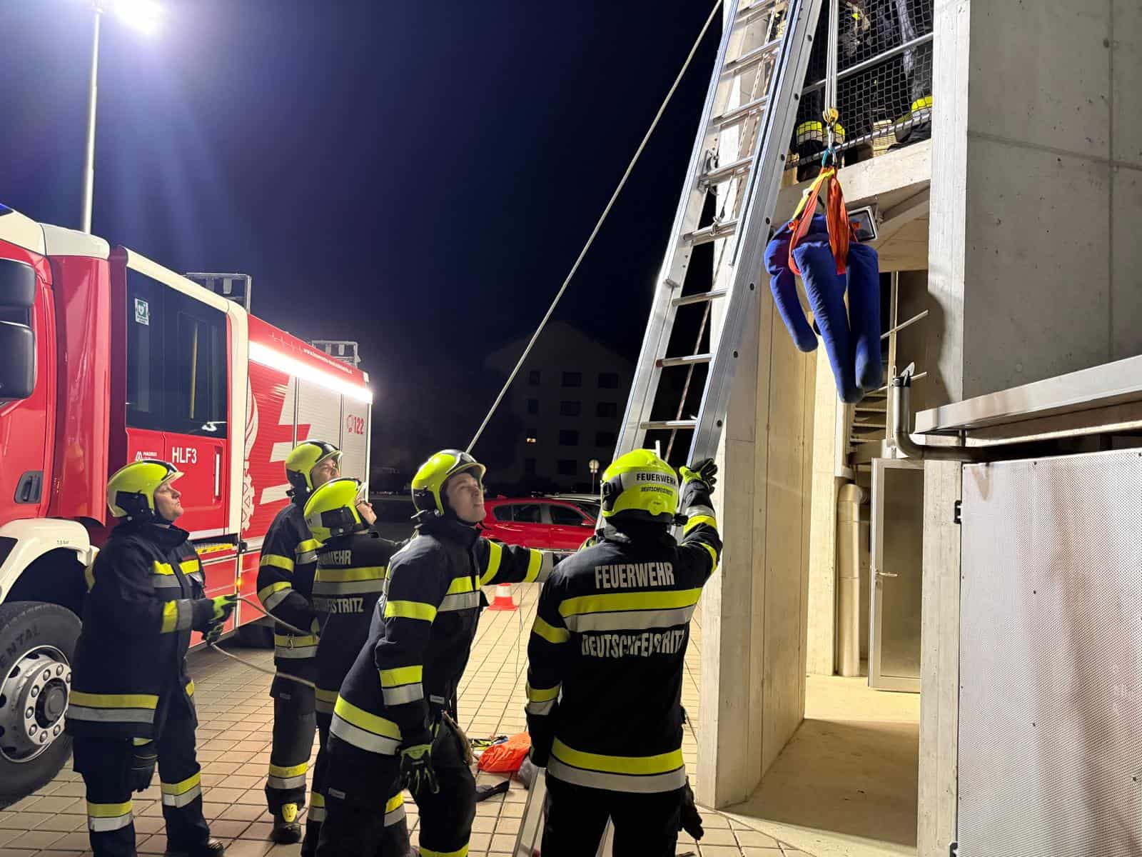 Im Zuge unserer Allgemeinen Übung am 20.10.2025 übten wir mit unserer Ausrüstung die Rettung aus Höhen. Dabei wurde neben unseren Leiterwegen auch die Tätigkeit aus dem Arbeitskorb eines Hubrettungsgerätes beübt. An dieser lehrreichen Übung nahmen 18 Mitglieder unserer Wehr teil.