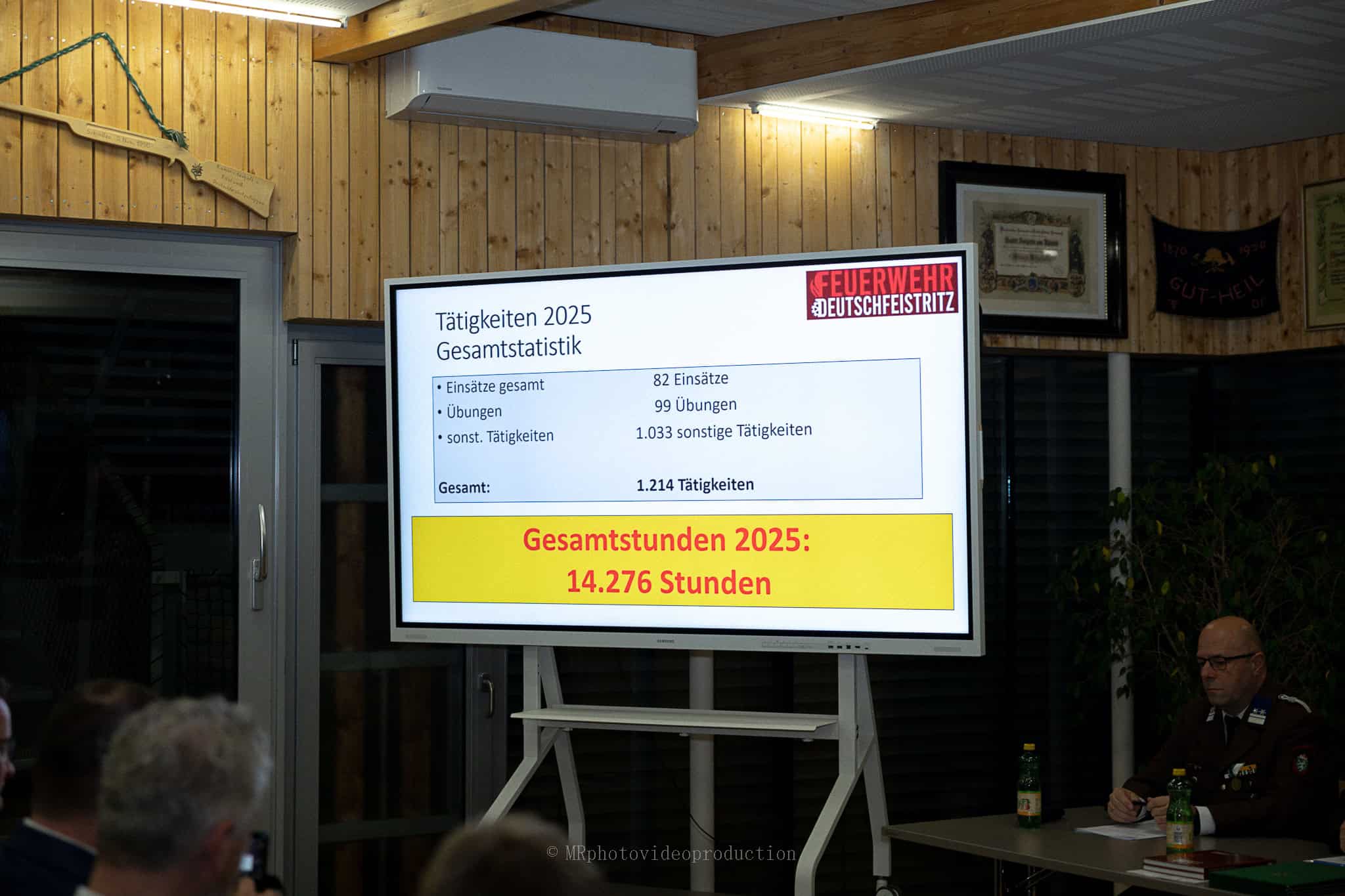 Im Zuge der Versammlung konnte ABI Reiter einen imposanten Leistungsbericht für das Jahr 2025 präsentieren. Bei insgesamt 82 Einsätzen gelang es der Feuerwehr, 12 Menschen und 2 Tiere zu retten. Insgesamt wendeten die Kameradinnen und Kameraden der FF Deutschfeistritz im vergangenen Jahr stolze 14.276 freiwillig geleistete Stunden für die Sicherheit an die Zivilbevölkerung auf. Die einzelnen Beauftragten der Sachgebiete Ausbildung, Atemschutz, Sanität, Fahrzeuge/Geräte, Funk, Jugend, Senioren und Chronik/Feuerwehrgeschichte berichteten über die vielen Aktivitäten unserer Wehr.