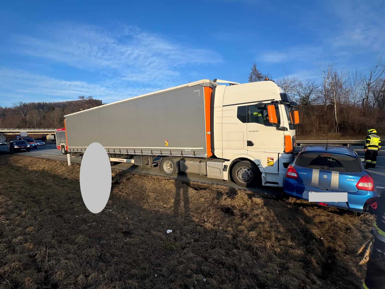 Am 06.02.2026 wurden seitens der Landesleitzentrale Steiermark um 15:49 Uhr gemäß Autobahnalarmplan die Feuerwehren Deutschfeistritz und Friesach/Wörth mit dem Alarmstichwort T03-V (Verkehrsunfall mit verletzter Person) zu einem Verkehrsunfall auf der A9 beim Knoten Deutschfeistritz in Fahrtrichtung Spielfeld alarmiert. Ein LKW und ein PKW waren kollidiert, dabei wurden 2 Personen unbestimmten Grades verletzt und vom anwesenden Rettungsdienst versorgt. Die einsatzleitende Feuerwehr Friesach/Wörth wickelte den Einsatz ab sodass unsere – mit MTF, HLF 3, KRFS-Tunnel und VFA ausgerückten 19 Personen – den Einsatz beenden und in das Feuerwehrhaus einrücken konnten.