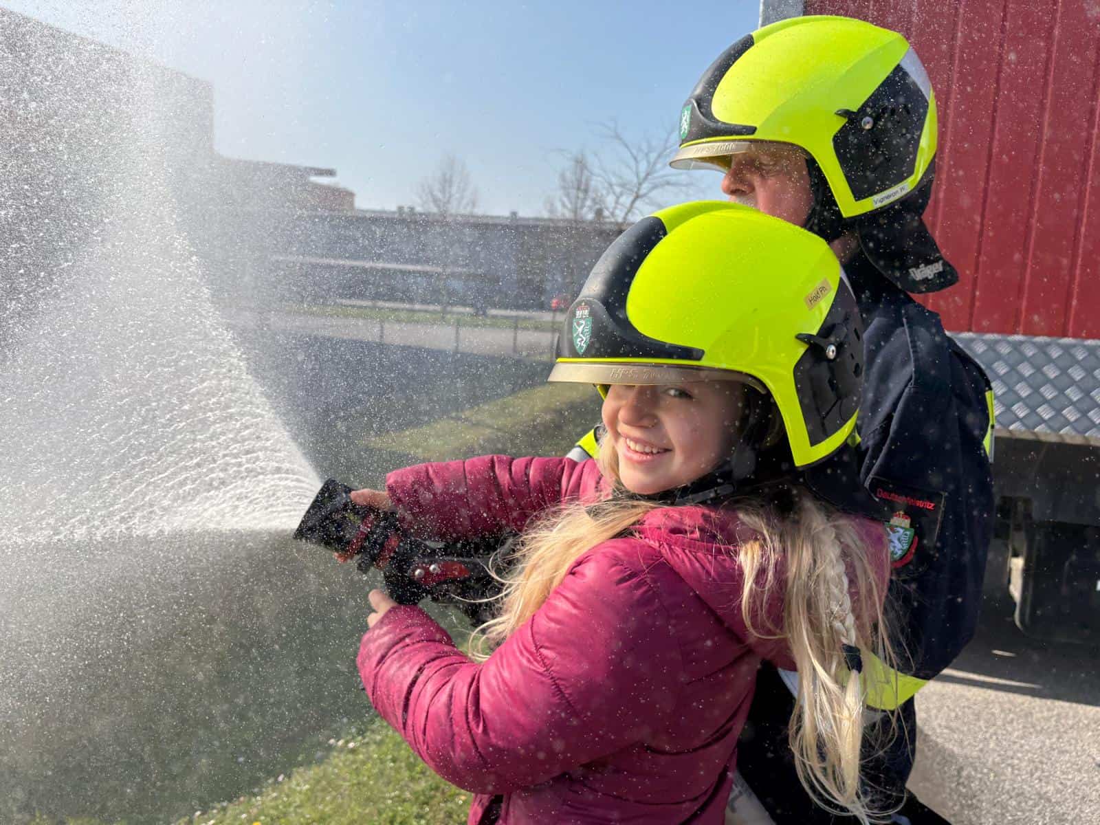 Bei schönem, warmem Wetter konnten wir den Tag perfekt nutzen – natürlich durfte auch das Spritzen mit dem Feuerwehrschlauch im Freien nicht fehlen. Ein weiteres Highlight war ein verrauchter Raum (Übungsrauch), in dem die Kinder die Gefahren von Feuer und Rauch hautnah erleben konnten.
