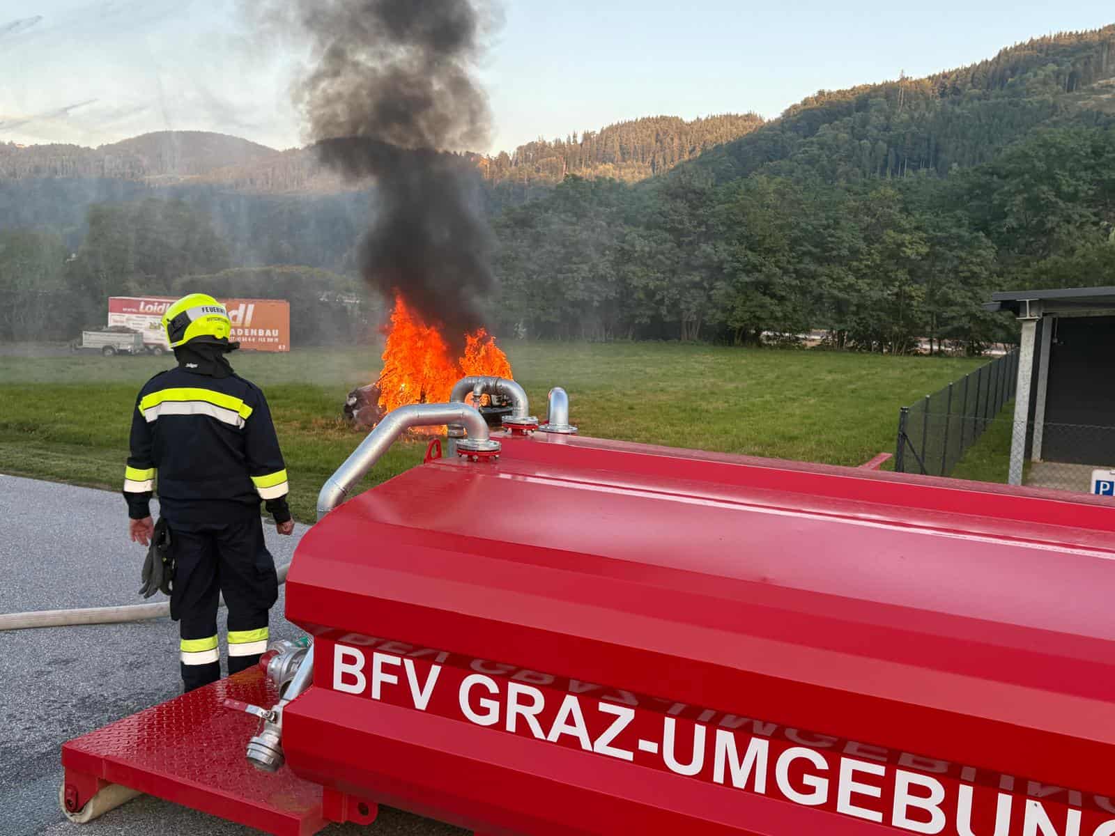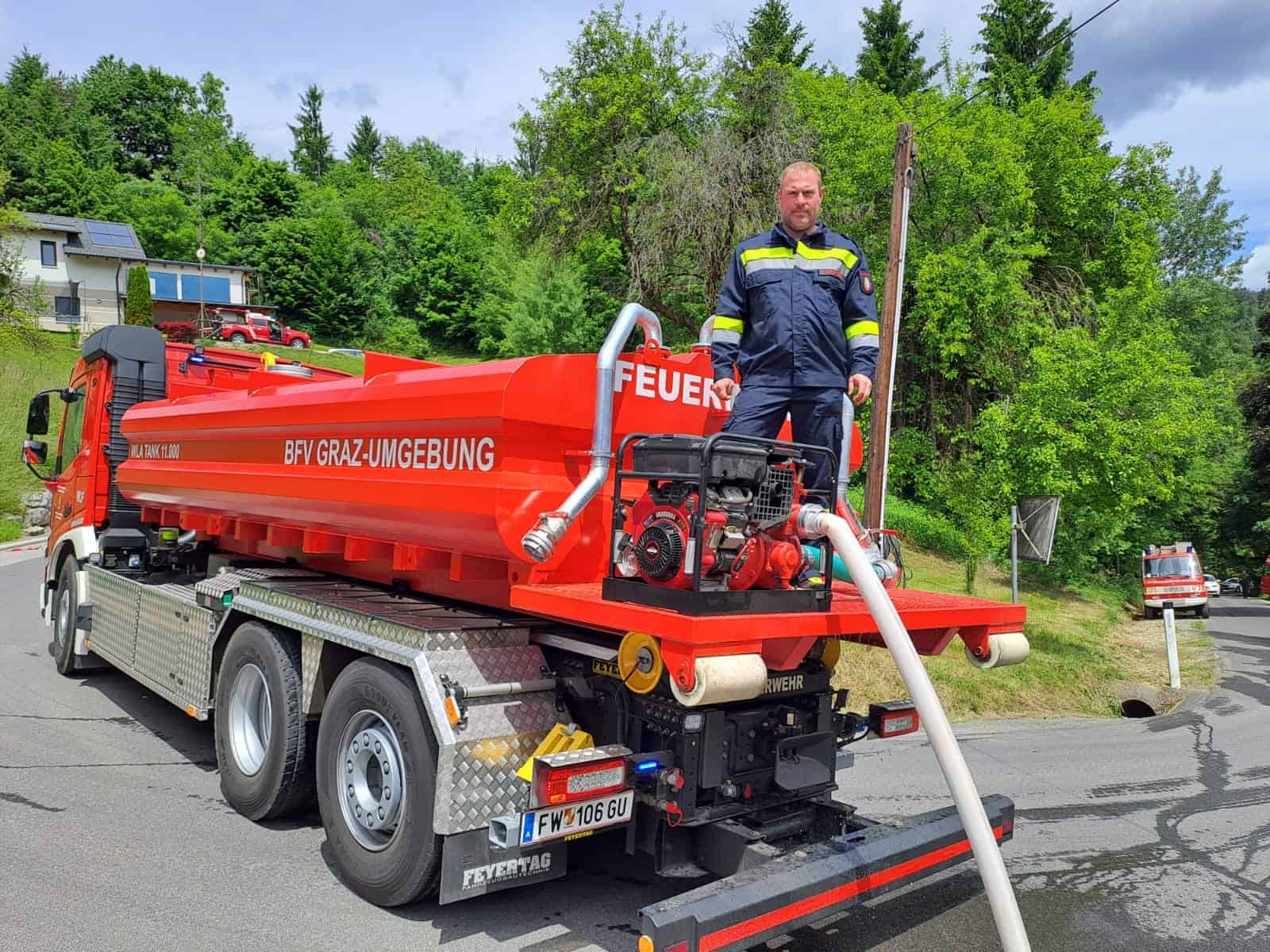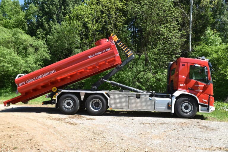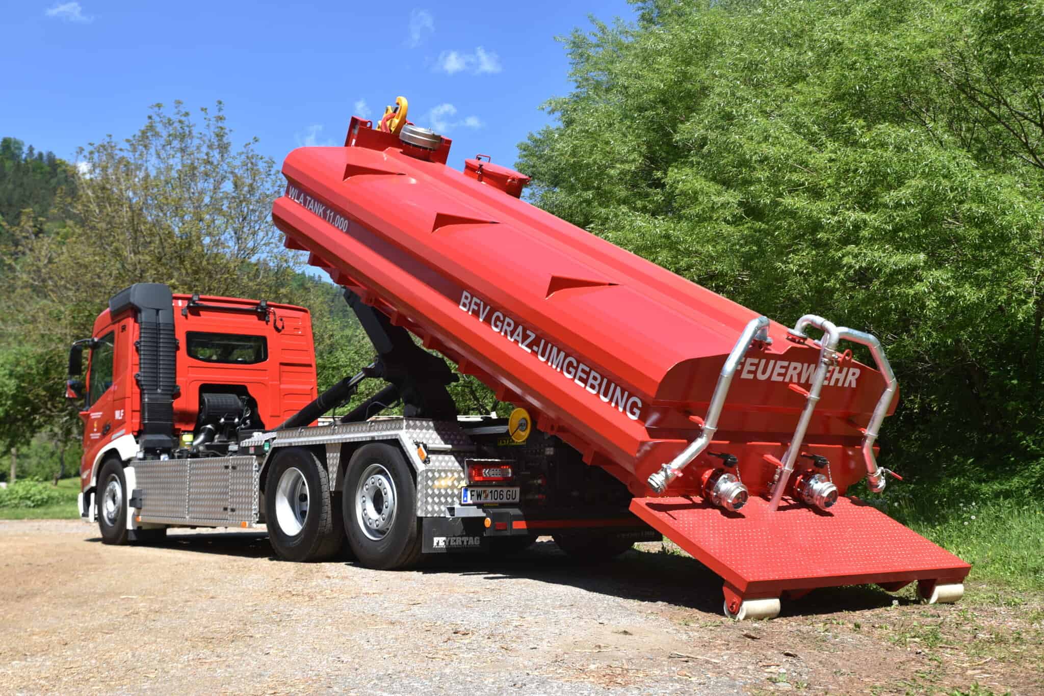 Mit dem Wechselaufbau (WLA) „Tank“ können 11.000 Liter Löschwasser zur Einsatzstelle gebracht werden. Mit einer dazugehörigen Tragkraftspritze – platziert an der Containerplattform – kann das Löschwasser verteilt werden. Dieses Einsatzmittel ist Bestandteil des Waldbrandzuges des BFV Graz-Umgebung.